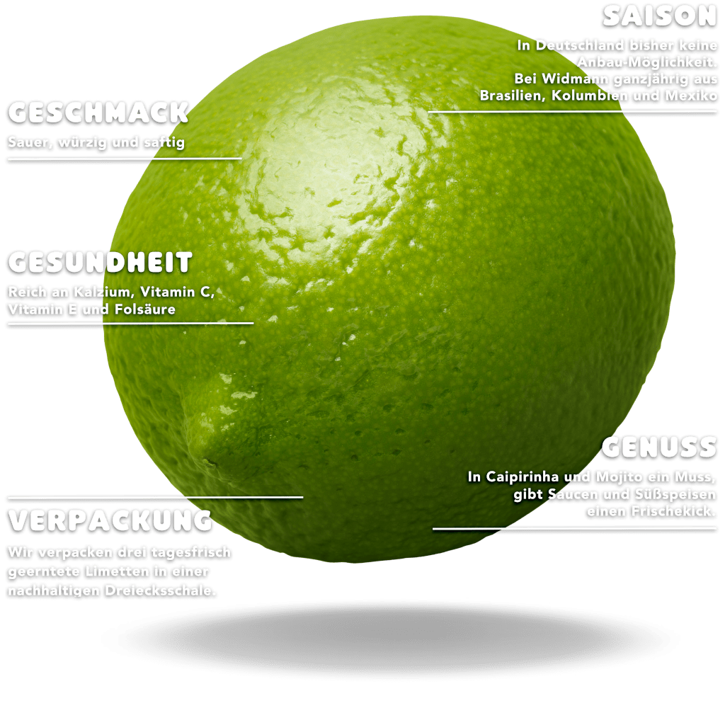 Da diese Zitrusfrüchte sehr kälteempfindlich sind, können sie bei uns nicht angebaut werden. Wir beziehen unsere Limetten je nach Saison aus Brasilien, Kolumbien oder Mexiko.